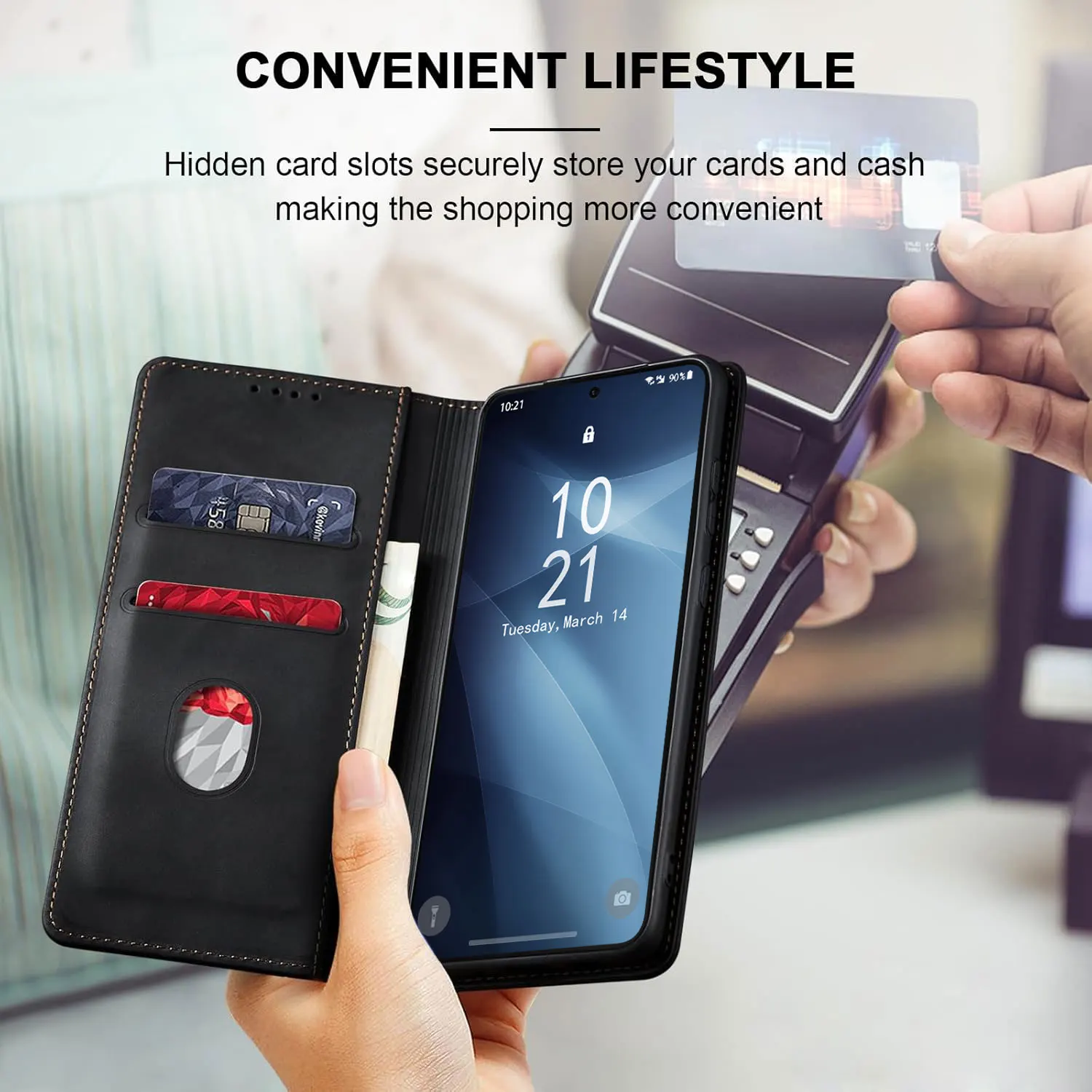 - Multi-Function: Card slots & flip stand